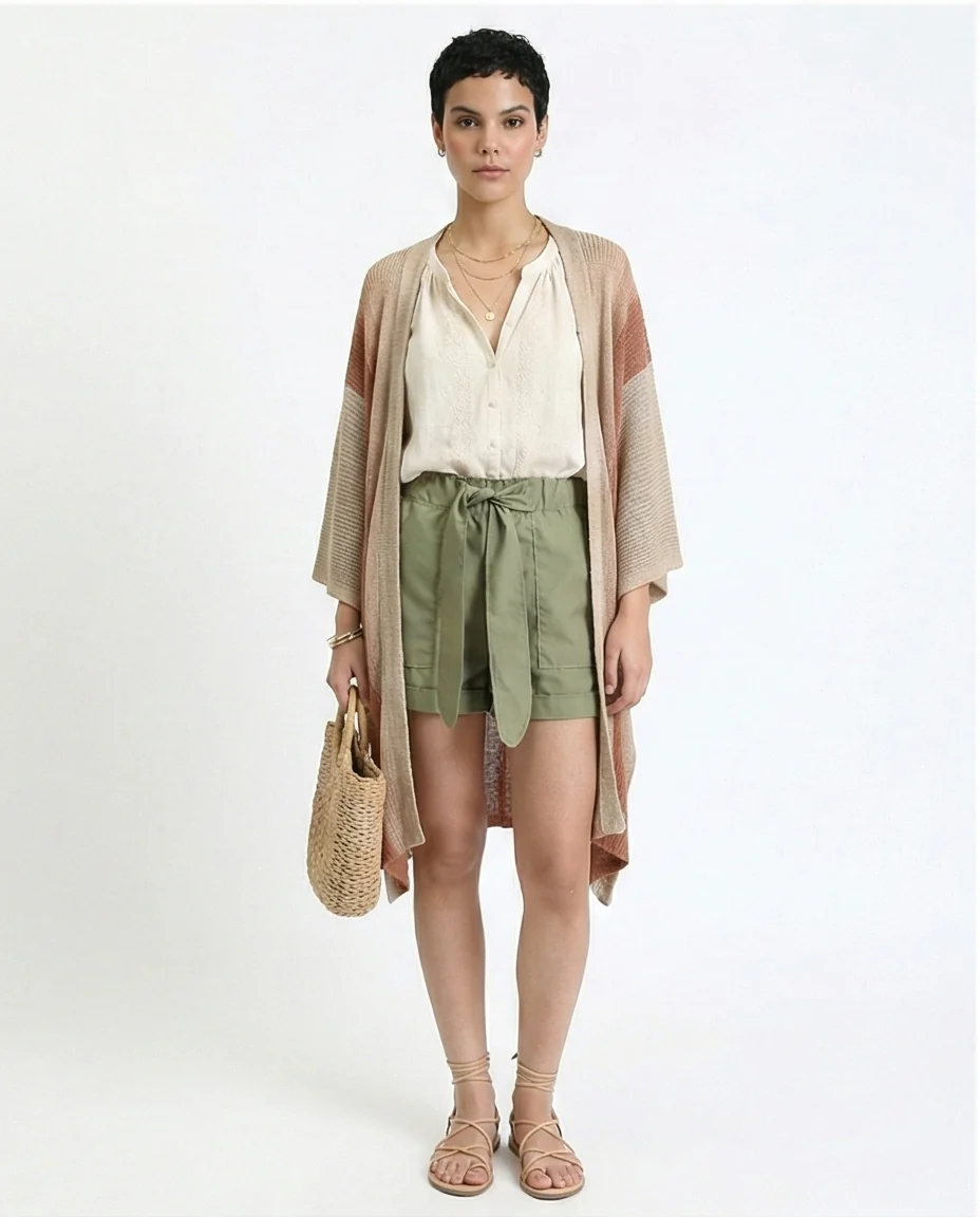 R209923 - Fashionable Shorts with Decorative Belt - Olive