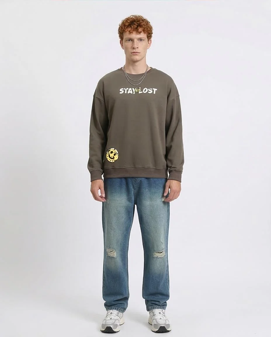 Redefine your urban wardrobe with the RAVIN "Stay Lost" Sweatshirt. Designed for those who embrace the journey as much as the destination, this sweatshirt blends premium comfort with an unapologetic streetwear edge. Crafted from a high-quality cotton-rich blend, it features a heavy-duty yet soft-touch finish that holds its shape while providing all-day warmth. The relaxed, drop-shoulder silhouette offers a modern, oversized aesthetic that�s perfect for layering or wearing as a standalone statement piece. Design Highlights Signature Graphics: Features a bold "STAY LOST" bubbly typography on the chest and a vibrant "Drip" smiley patch on the lower hem. Statement Back: The reverse side showcases an intricate, oversized keychain graphic�complete with motel tags and disco ball charms�fusing retro-inspired art with contemporary street culture. Premium Construction: Finished with a thick ribbed crew neck, reinforced cuffs, and a flexible hemline to ensure durability and a perfect fit. Versatile Earth Tone: The muted olive/taupe hue acts as a neutral powerhouse, pairing effortlessly with distressed denim, cargo pants, or joggers.