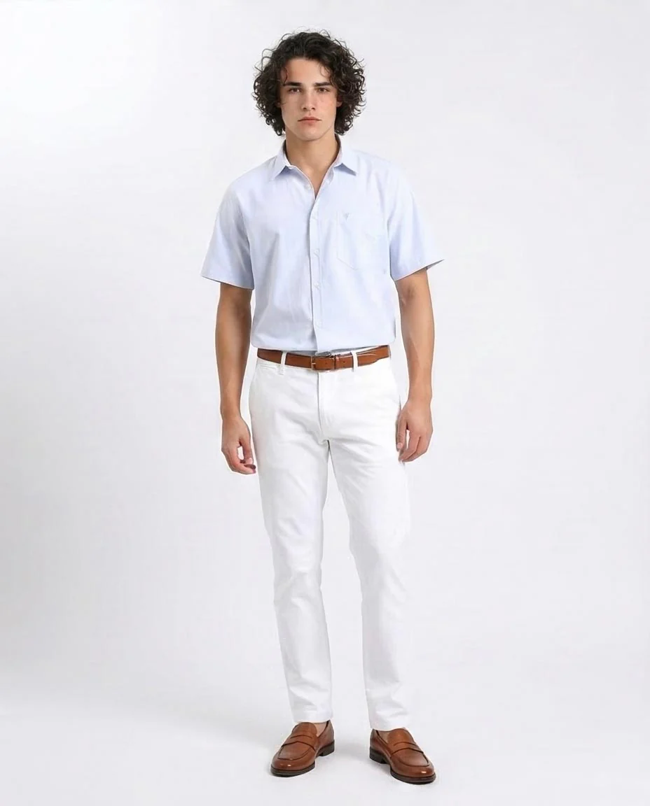 Experience the ultimate in natural comfort with the Ravin 100% Pure Cotton Short Sleeve Shirt. Designed for a breathable, skin-friendly feel, this shirt is your go-to for warm-weather sophistication. The premium 100% cotton construction ensures maximum airflow and a soft, structured drape that improves with every wash. Featuring a crisp pointed collar and a refined tailored fit, this sky blue essential strikes the perfect balance between relaxed and professional. Whether you're navigating a summer wedding or a casual office day, the high-quality cotton fibers provide a polished "Old Money" aesthetic that never goes out of style.