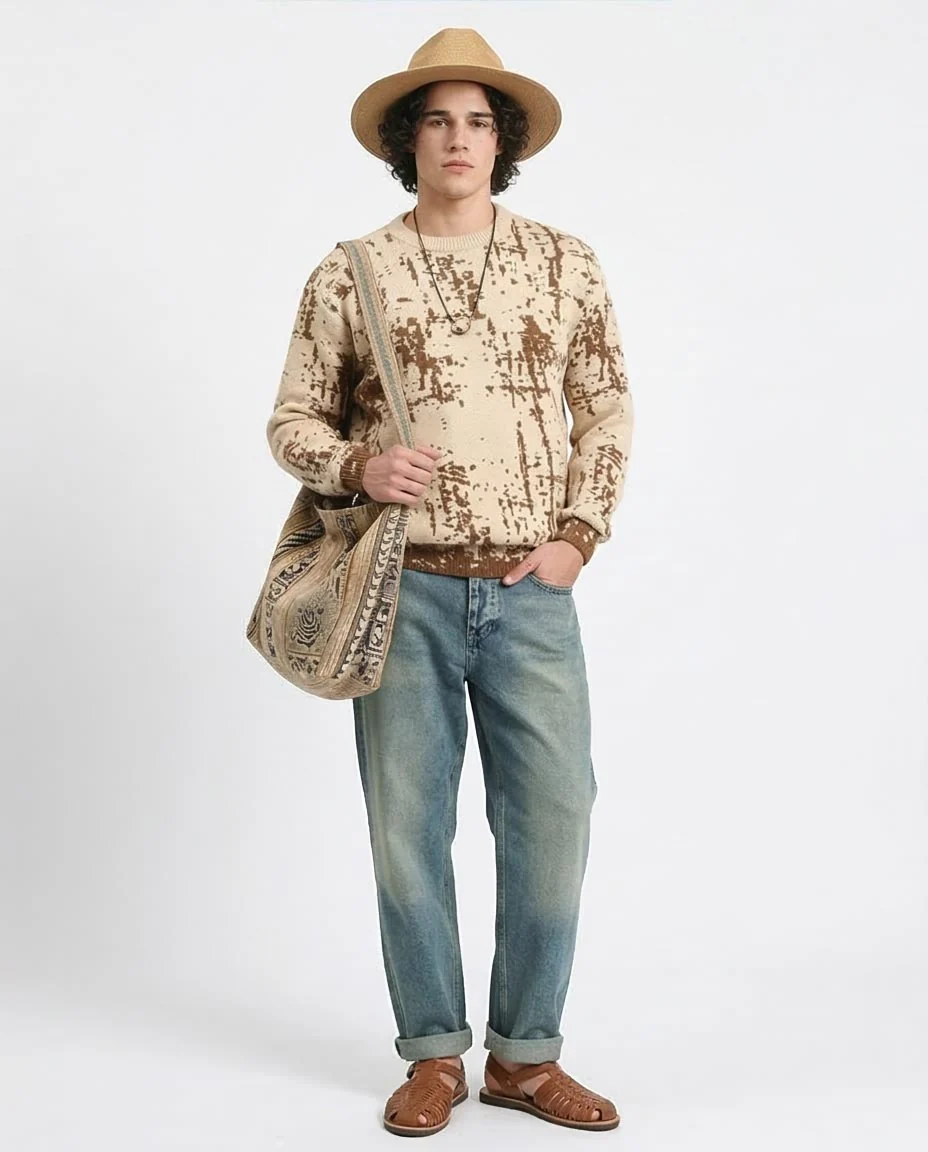 - Versatile Styling: Pairs effortlessly with relaxed denim for a "Modern Boho" vibe or chinos for an "Elevated Street" look. Materials &