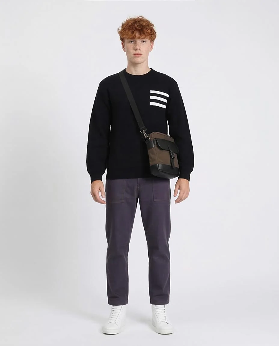 Elevate your everyday rotation with this standout piece from Ravin. Designed for the man who appreciates clean lines and tactical textures, this sweater blends contemporary street aesthetics with premium comfort. Product Overview Crafted with a sophisticated waffle-stitch knit, this sweater offers a rich, tactile hand-feel and a structured silhouette that holds its shape. The deep black hue provides a sharp backdrop for the high-contrast triple-stripe detail on the chest, making it an instant focal point for any "Elevated Street" or "New Prep" look.