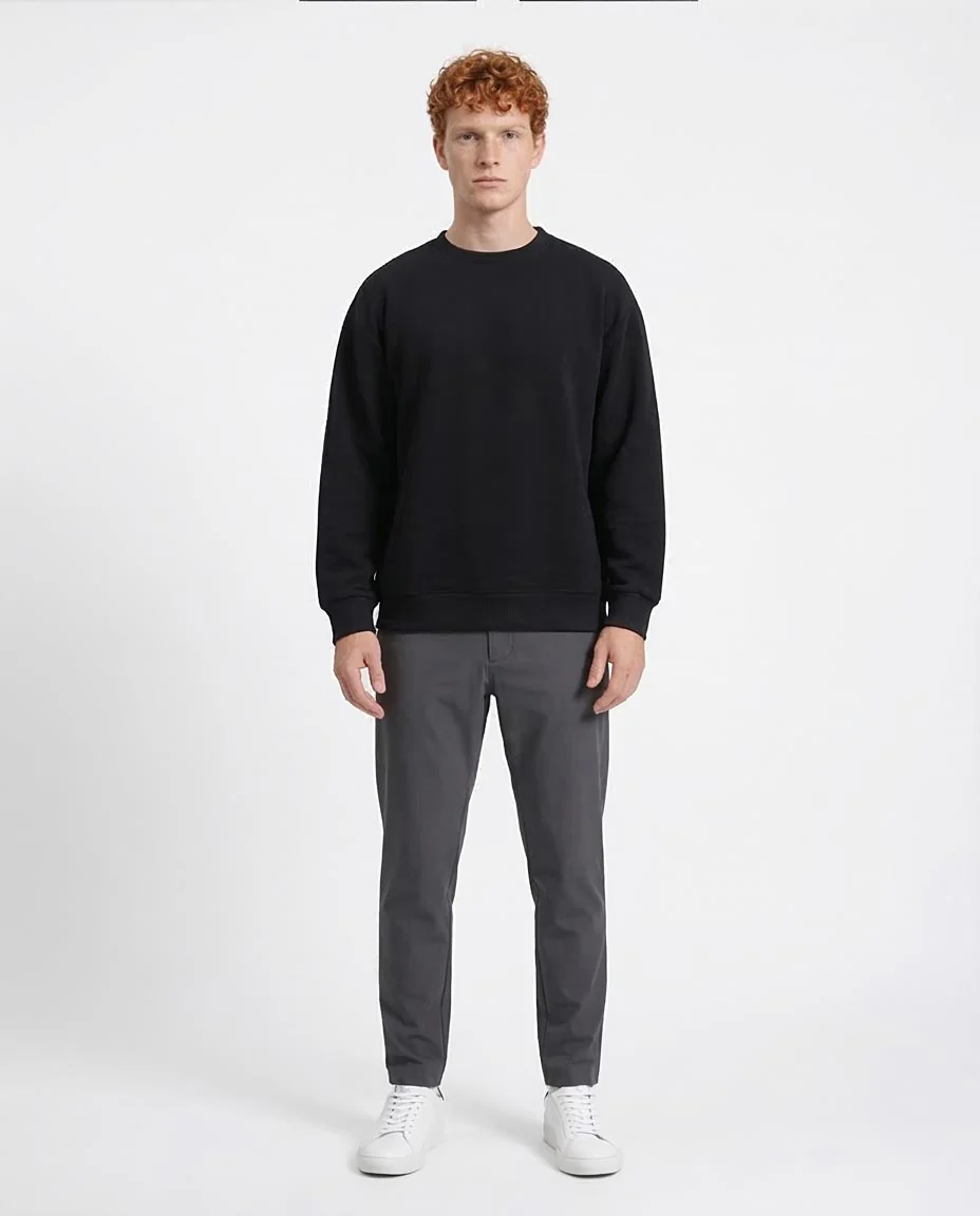 Elevate your streetwear rotation with this essential piece from RAVIN. Designed to bridge the gap between casual comfort and sharp, contemporary style, this sweatshirt focuses on high-quality texture and clean architectural lines. Crafted from a premium pique-ribbed fabric, the garment offers a structured yet soft feel that holds its shape throughout the day. The deep black base is punctuated by minimalist white contrast piping that runs across the back yoke and down the sleeves, creating a streamlined, athletic-inspired silhouette.