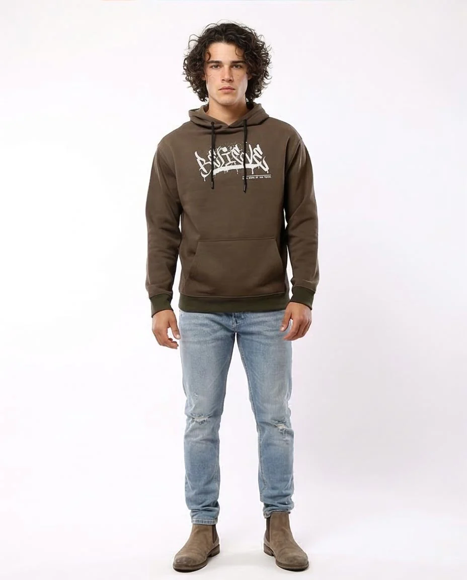 Ravin Men's "Believe" Graphic Hoodie – Earth Brown with Contrast Ribbing - o180396