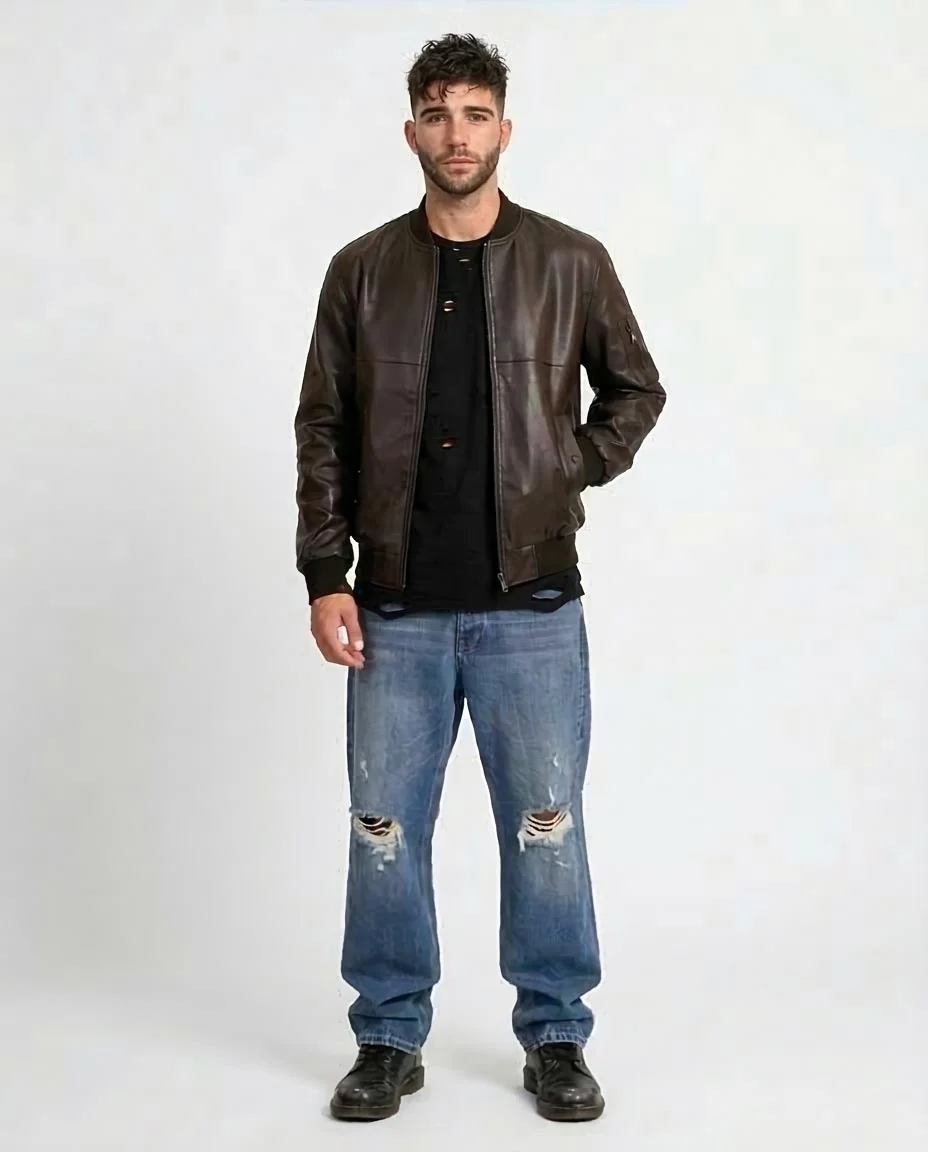 Crafted from high-quality synthetic leather with a semi-matte sheen, it offers the luxury look and durable feel of genuine leather while remaining easy to care for. The relaxed bomber silhouette is anchored by traditional ribbed detailing at the collar, cuffs, and hem, ensuring a secure fit that holds its shape.