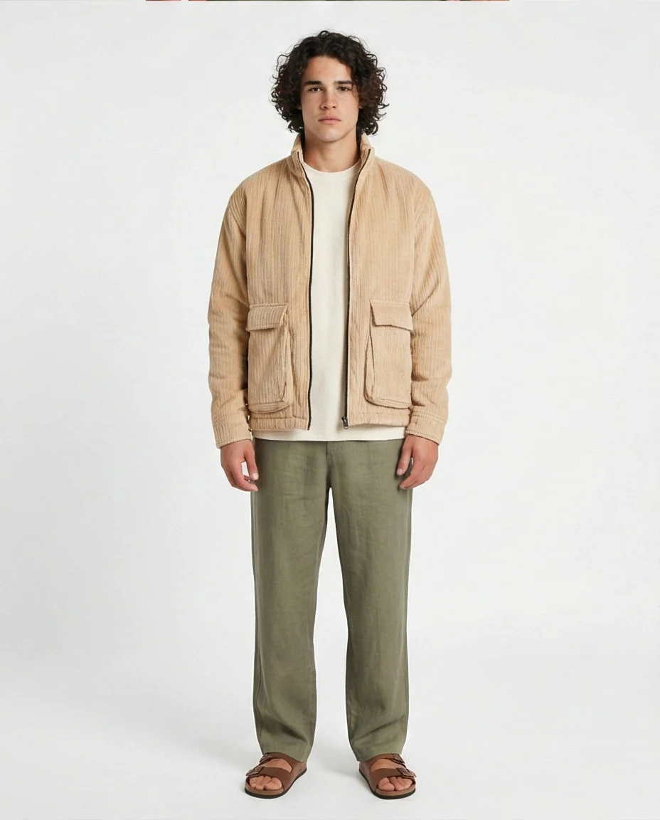 Stay stylish and warm with this beige corduroy jacket from Ravin. Designed with a zip closure and practical pockets, this jacket blends utility and classic design. Pair it with dark jeans and boots for a timeless look. Key Features: