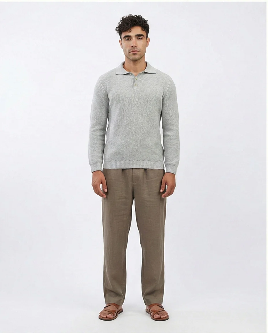 o201233 - Regular Fit Basic Pullover With Long sleeves - Light Grey