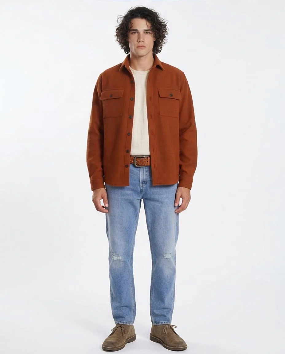 Master the art of transitional dressing with the Ravin Heritage Overshirt. Defined by its substantial weight and rich, autumnal "Rust" palette, this piece serves as the ultimate hybrid between a classic workshirt and a structured jacket.