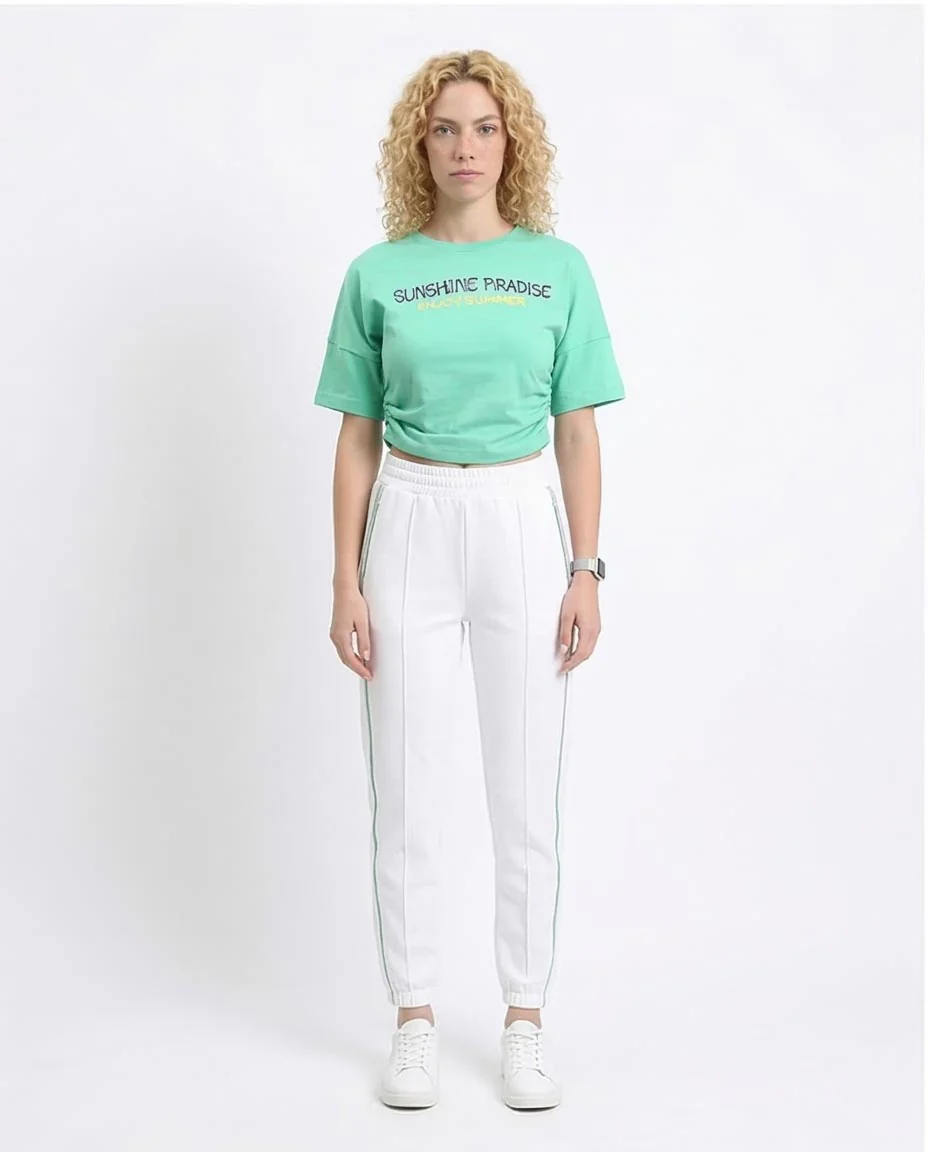 O203163 - Printed Short Tee with Side Drawstring - Light Green