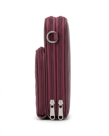 For a daytime city look, wear it over a neutral-toned trench coat and straight-leg denim to let the rich maroon pop. For evening transitions, detach the strap and use it as an organized tech clutch inside a larger leather shopper or carry it solo with a minimalist slip dress and boots.