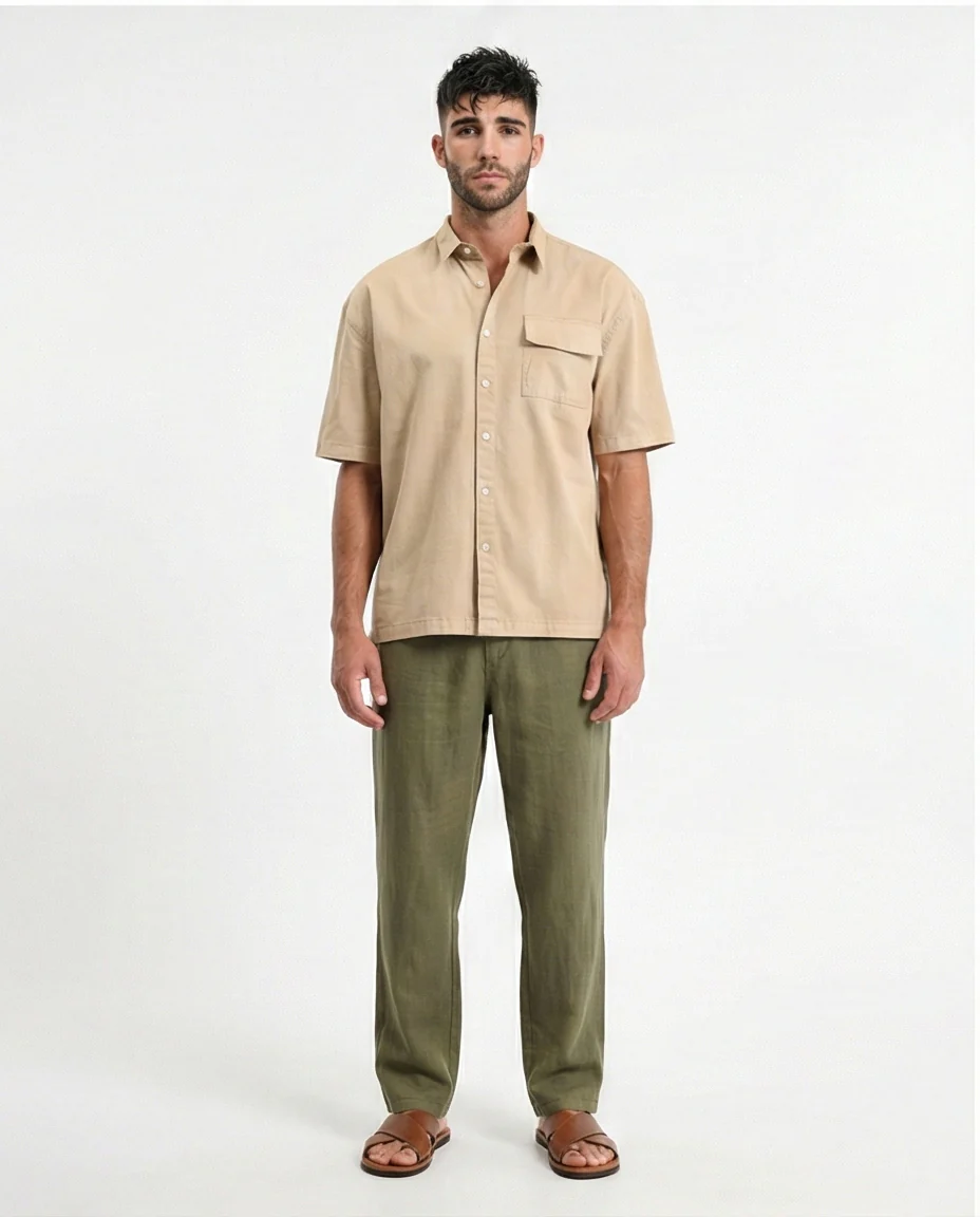 R210048 - Short Sleeves Shirt with Front Pocket - Dark Beige