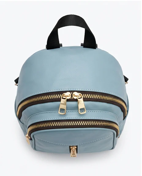 Sky Blue Multi-Zip Faux Leather Mini Backpack - R210648