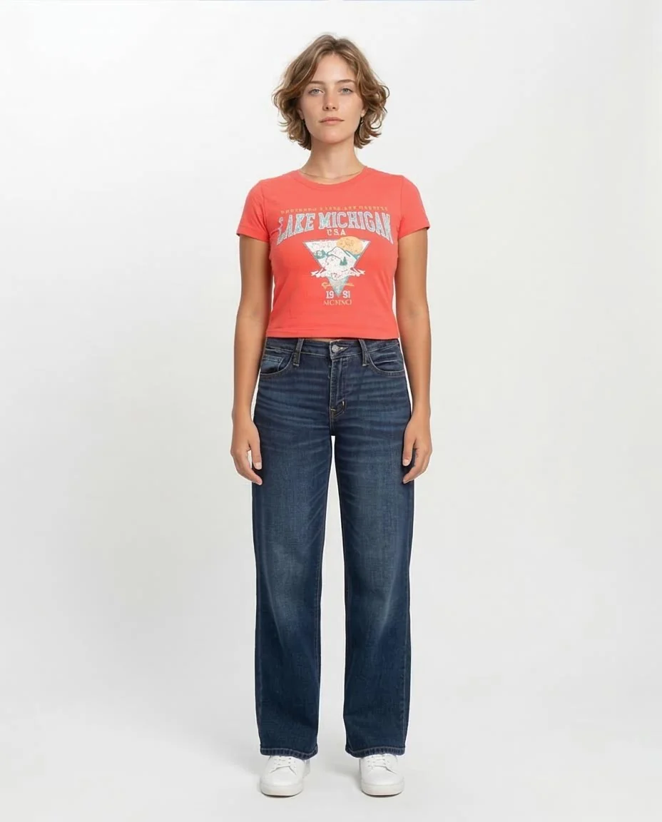 Elevate your casual rotation with a touch of nostalgic lakeside energy. This Ravin Cropped Graphic T-Shirt blends vintage-inspired aesthetics with a modern, trend-focused silhouette. Featuring a bold "Lake Michigan" mountain-peak graphic, this piece is designed for those who appreciate effortless street style with a heritage feel. Crafted from premium, breathable cotton-blend fabric, it offers a soft-to-touch feel that lasts all day. The slim, cropped fit is specifically tailored to sit perfectly above the waistline, making it the ideal partner for high-waisted denim or relaxed-fit cargo pants. Whether you're heading to a weekend brunch or exploring the city, this coral-toned tee adds a vibrant pop of color to any outfit. Features &