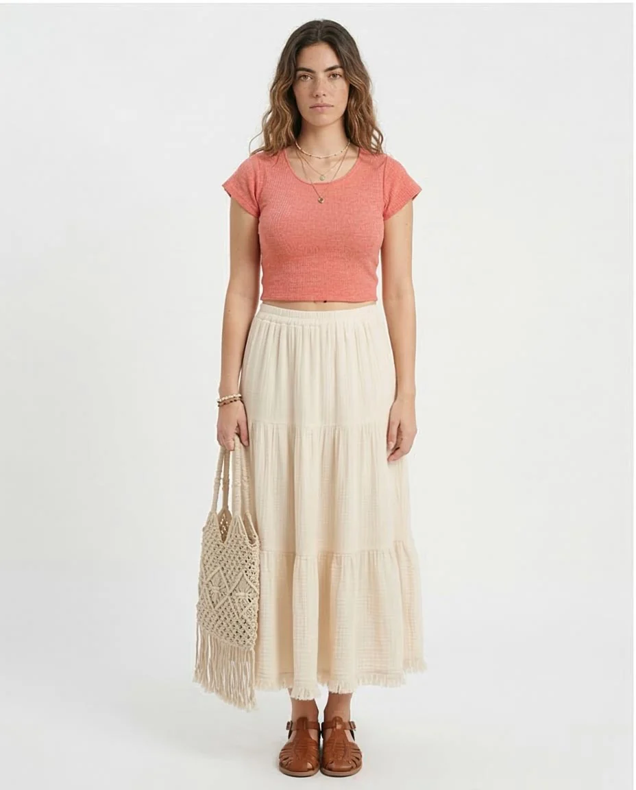 Elevate your everyday rotation with this essential piece from Ravin. Designed with a focus on tactile comfort and effortless style, this crop top features a fine-ribbed knit construction that hugs the body in all the right places. The soft coral hue offers a fresh, sun-kissed energy perfect for seasonal layering or standing alone as a minimalist statement. The standout feature is the delicate raw-edge "lettuce" trim along the scoop neckline and sleeves, adding a touch of vintage-inspired charm to a modern silhouette. Whether you're pairing it with high-waisted denim for an urban look or a flowing maxi skirt for a boho-chic vibe, this top is the ultimate versatile staple.